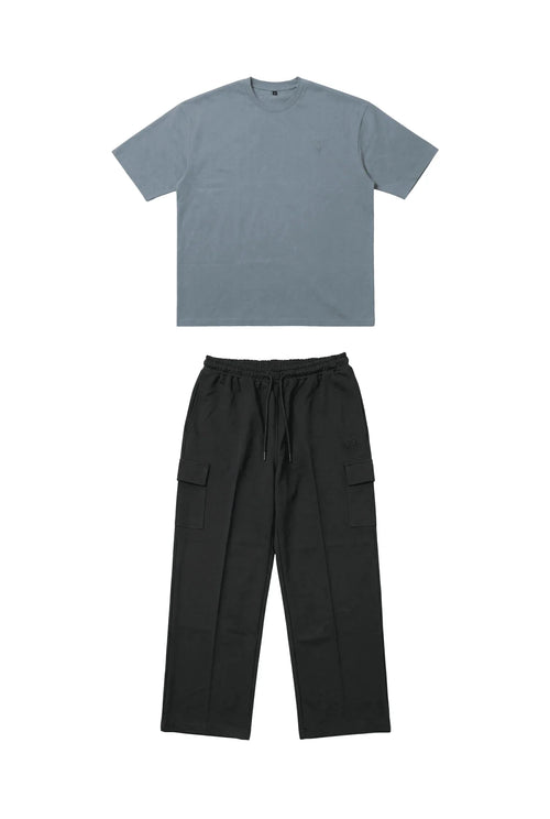 طقم نسائي كامل من تيشيرت كبير الحجم وبنطال واسع بلون أزرق مخضر